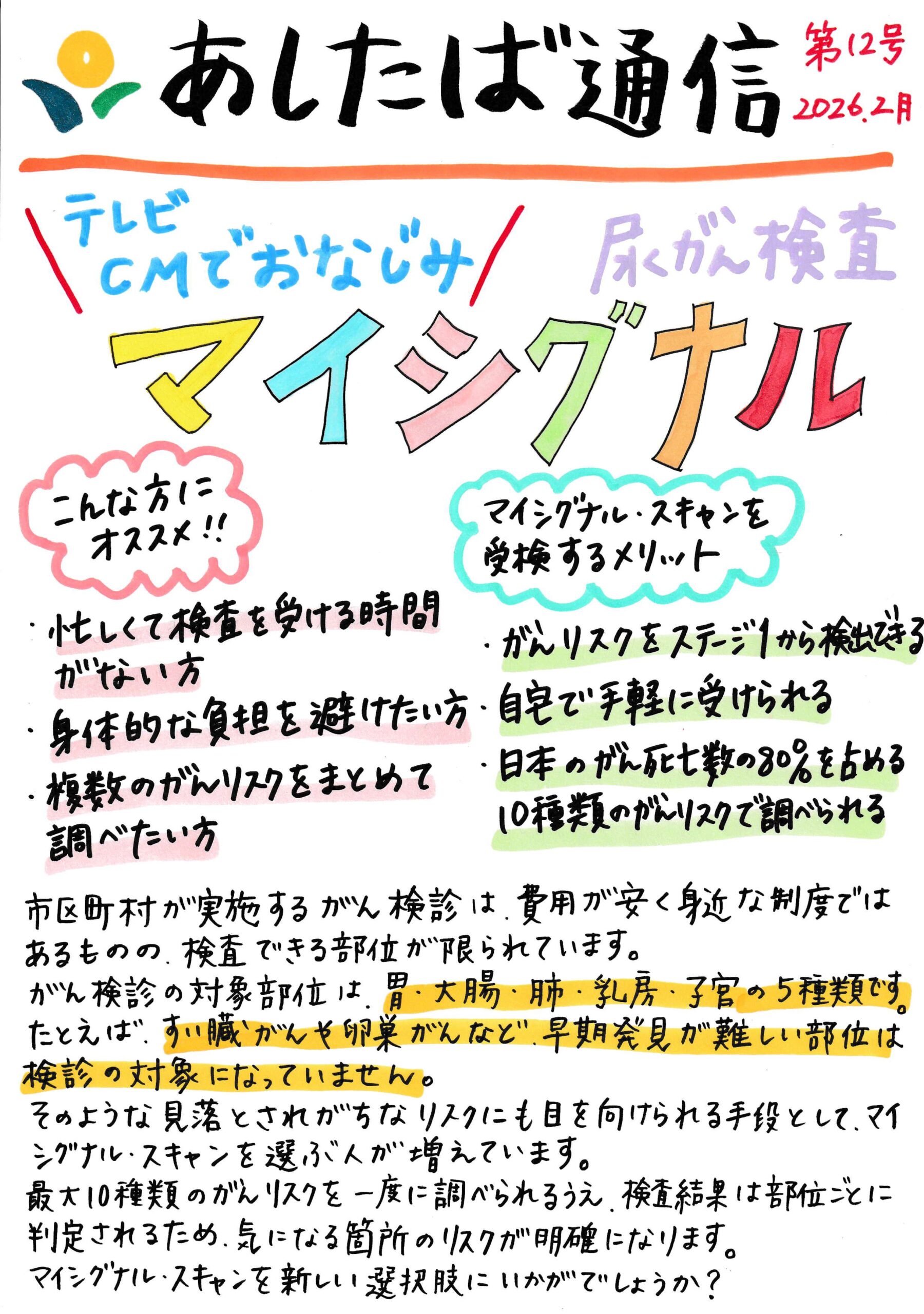 あしたば薬局 川沿店の情報紙「あしたば通信 第12号」です