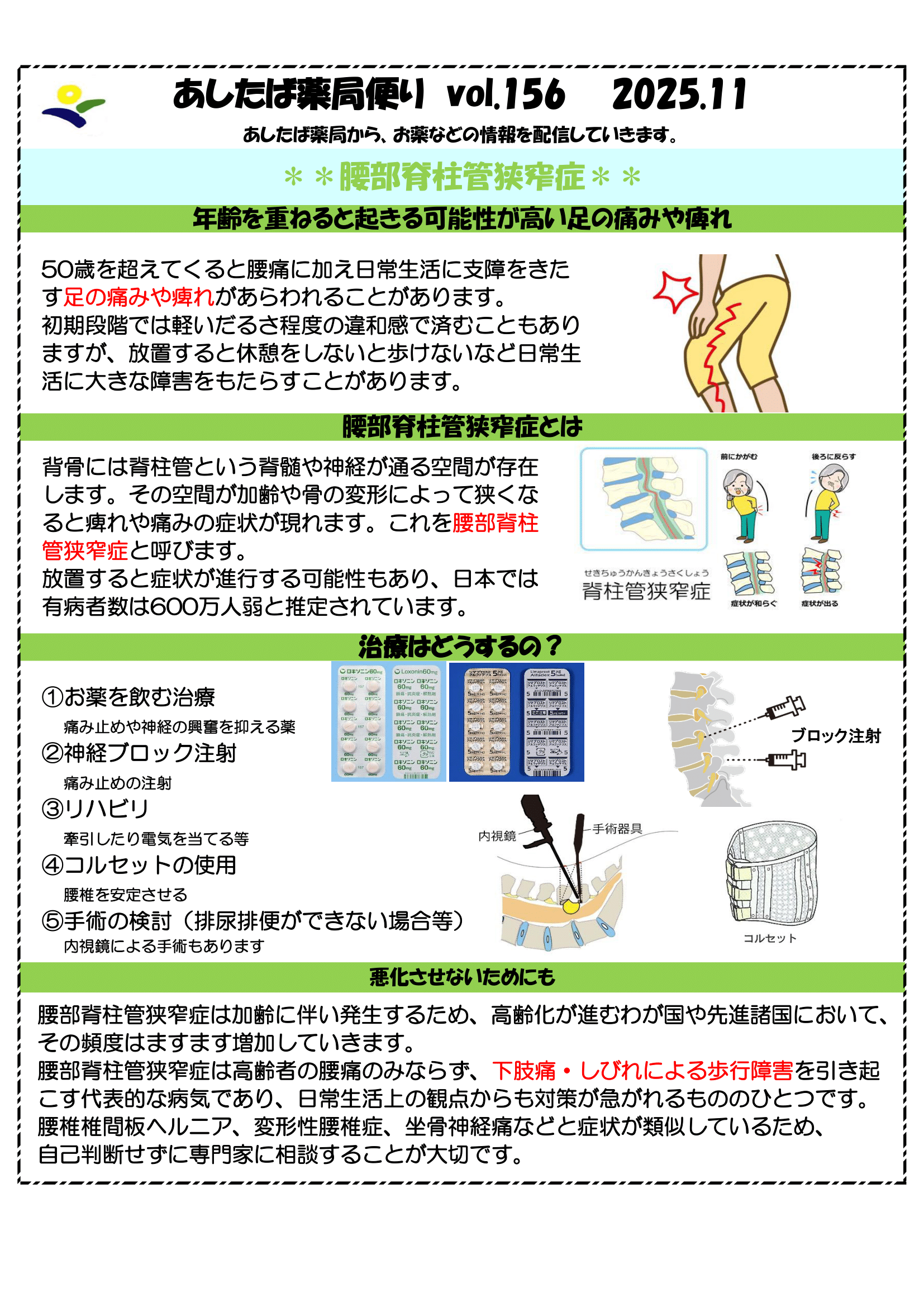 印刷はこちらから⇒あしたば便り- 腰部脊柱管狭窄症について