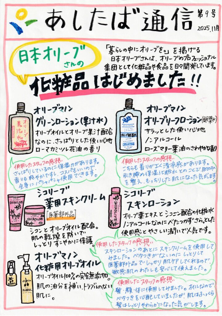今回は新規入荷した「日本オリーブの化粧品」を特集!